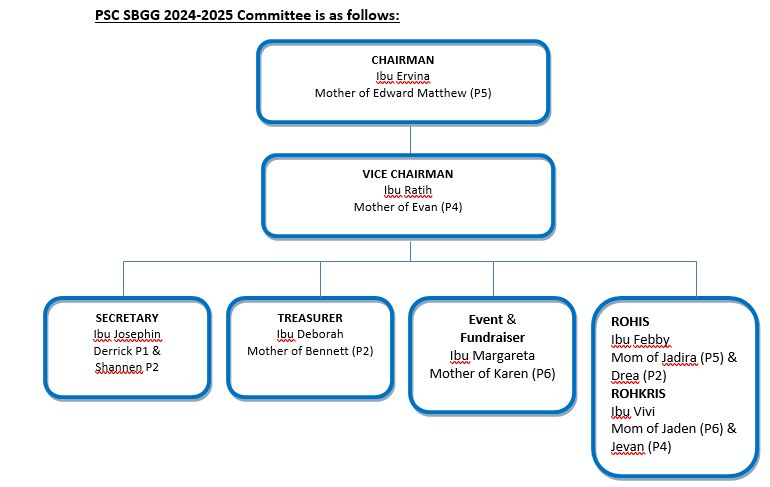 PSC is involved in various school events such as Christmas celebration, Eid Ul Fitr celebration and fundraising events. Their service has made a positive impact in our school community. Our continous cooperation will surely result in the development of SBGG as a big family.
